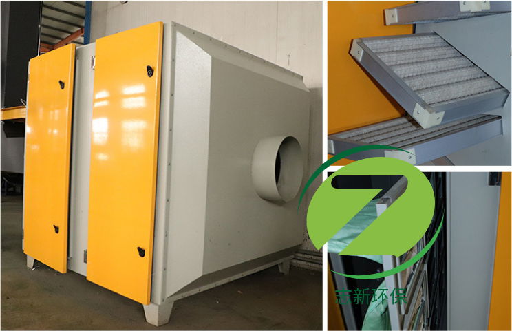 初效過濾+布袋過濾,有效的過濾10微米以上的顆粒物防止活性炭堵塞。